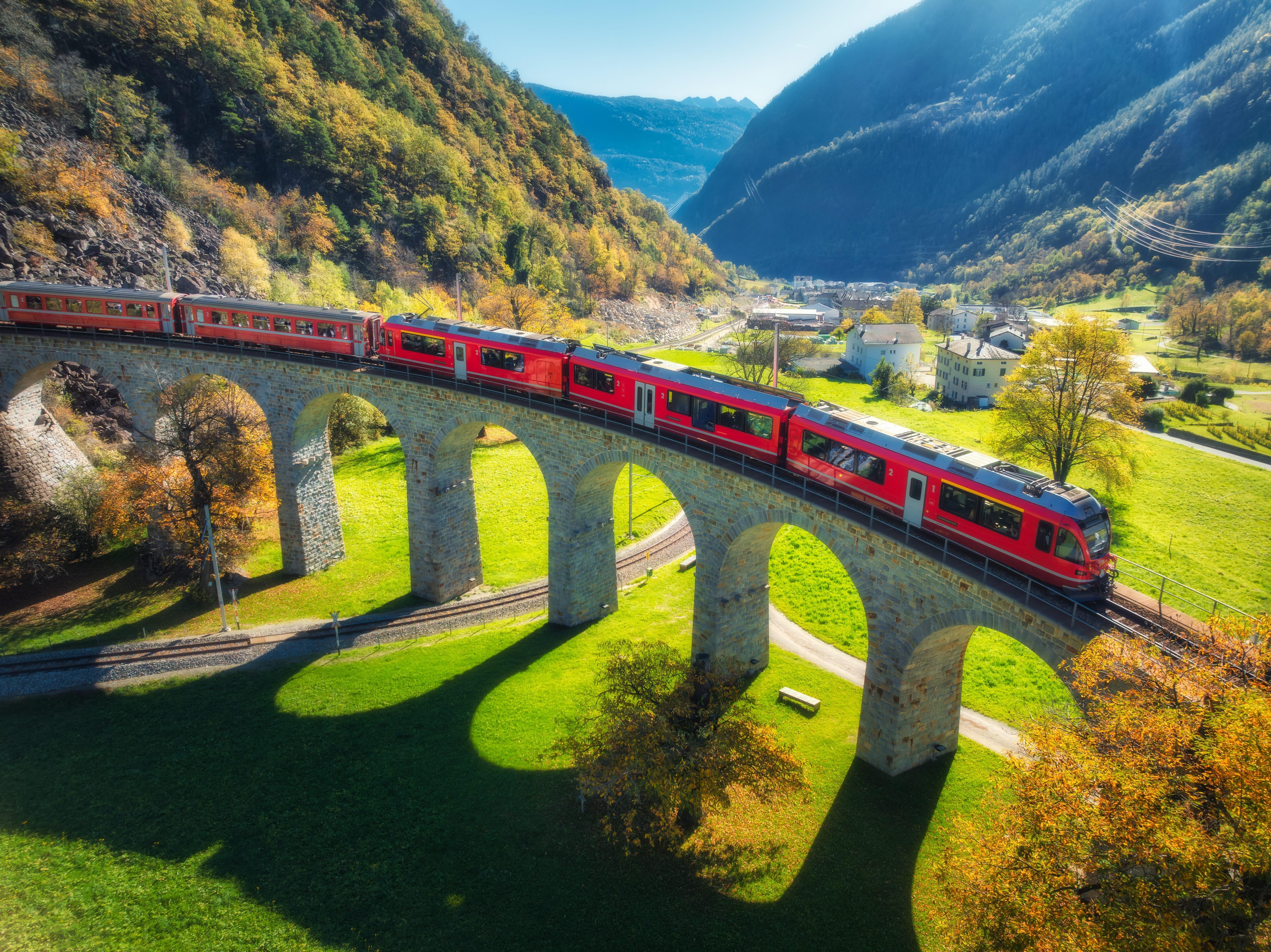 หากอยากทัวร์ยุโรป นั่งรถไฟสายที่สูงที่สุดในยุโรปและโรแมนติกมากที่สุดในยุโรปก็ต้องรถไฟสายเบอร์นิน่า เอ็กซ์เพรส (Bernina Express) เพราะรถไฟจะค่อย ๆ วิ่งไต่ระดับความสูงขึ้นไปให้เราได้ชมวิวที่มีความสูงเหนือระดับน้ำทะเลประมาณ 2,253 เมตร โดยรถไฟจะวิ่งจากเมืองชูร์ (Chur) สวิตเซอร์แลนด์ – เมืองทีราโน (Tirano) ประเทศอิตาลี ใช้เวลาเดินทางประมาณ 4 ชั่วโมง