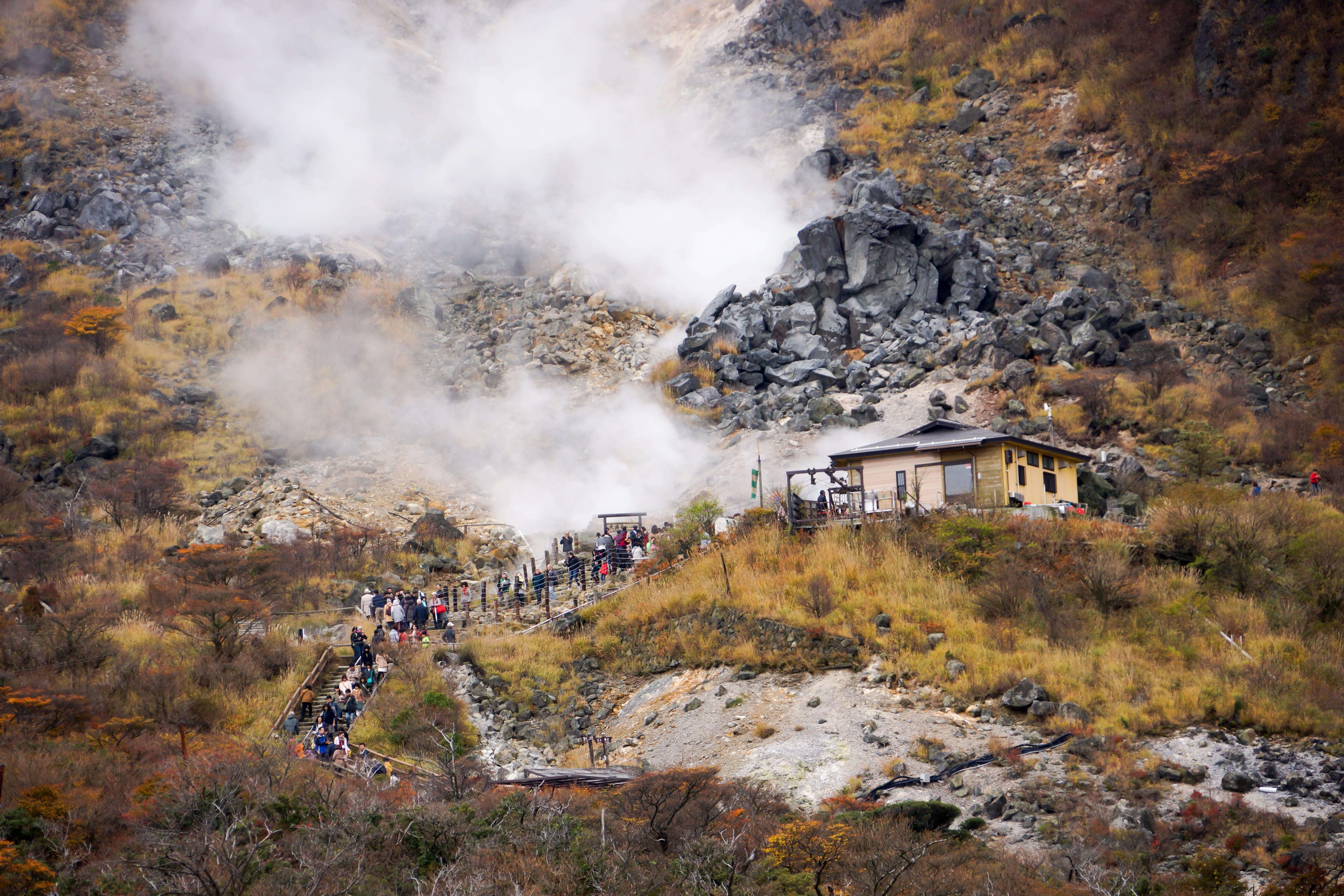 ปิดท้ายในลิสต์นี้กันที่หุบเขาไข่ดำ โอวาคุดานิ ในเมืองฮาโกเน่ ที่มีความเชื่อกันว่าใครได้กินไข่ที่นี่จะมีอายุยืนยาว ที่นี่เป็นหนึ่งในภูเขาไฟที่ยังคงคุกรุ่น และมีกำมะถันคละคลุ้งเป็นไอน้ำระเหยอยู่รอบๆ บริเวณภูเขา อีกทั้งยังถือเป็นจุดชมวิวที่สวยงามอีกด้วย