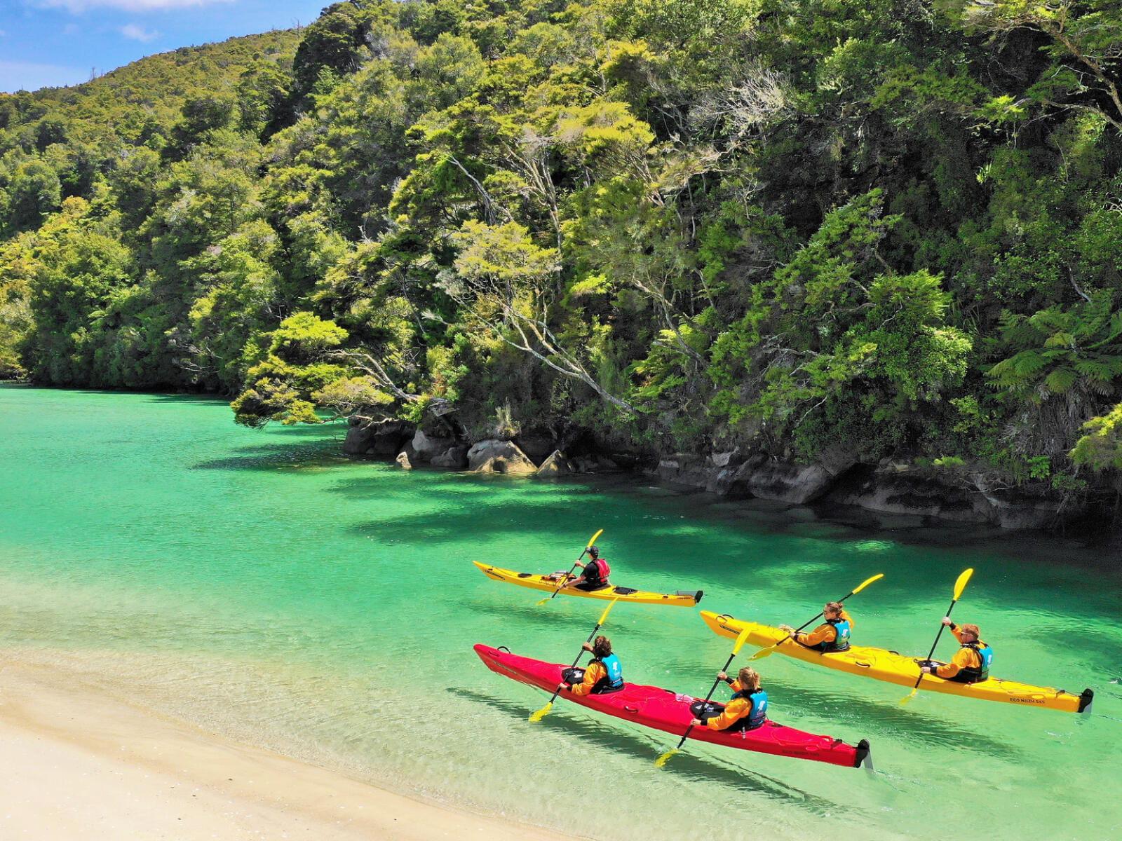 ประเทศนิวซีแลนด์ ที่ Abel Tasman เหมาะสำหรับนักเดินทางที่ชอบกิจกรรมผจญภัยทางน้ำอย่างมากเพราะที่ Abel Tasman เป็นหนึ่งในชายหาดที่ดีที่สุดในประเทศนิวซีแลนด์ มีธรรมชาติที่งดงามอีกทั้งยังเป็นเขตที่อากาศอบอุ่นที่สุดในประเทศนิวซีแลนด์ก็ว่าได้ แนะนำเลยสำหรับคนชอบกิจกรรมพายเรือที่ Abel Tasman การพายเรือคายัคอาจจะดูไม่แปลกใหม่สักเท่าไรสำหรับชาวไทย แต่! ทุกคน ถ้าเราได้พายเรือคายัคในประเทศที่มีธรรมชาติอุดมสมบูรณ์รอบตัวที่มีวิวสวยๆ ให้เราดูตลอดทาง แถมพระอาทิตย์ไม่แยงตาขณะพายเรือล่ะ มันจะฟินแค่ไหน จินตนาการกันแค่นี้แล้วไปลองด้วยตัวเองสักครั้ง แล้วจะลืมเรือคายัคที่เคยพายไปเลย