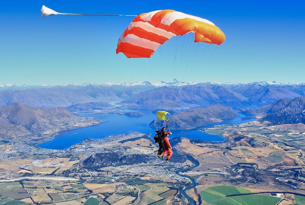 เป็นกิจกรรมสุดแอดเวนเจอร์ที่เหล่านักผจญภัยชื่นชอบ ยิ่งถ้าไปได้โดดร่มในเมืองควีนส์ทาวน์หรือ Wanaka ในประเทศนิวซีแลนด์แล้วก็ล่ะ ฟินอย่าบอกใครเลยล่ะ ที่นี่เหมาะสำหรับนักท่องเที่ยวที่ชื่นชอบความหวาดเสียว จะเป็นการกระโดดร่มจากเครื่องบินผ่านเทือกเขา Southern Alps อันเรื่องชื่อความสวยงาม ระหว่างกระโดดถ้าไม่มัวเสียวอยู่รับรองว่าจะได้เก็บเกี่ยวประสบการณ์ที่น่าจดจำอีกเยอะมากเลยทีเดียว แนะนำเลยเมืองควีนส์ทาวน์หรือ Wanaka มาลองสักครั้งแล้วจะติดใจแน่นอน
