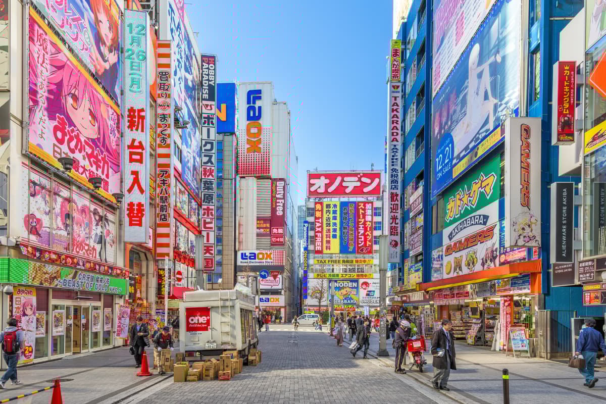 เมืองหลวงของชาวโอตาคุ! ดินแดนศักดิ์สิทธิ์แห่งอนิเมะ มังงะ วิดีโอเกม และฟิกเกอร์ มาที่นี่ต้องไปหมุนตู้กาชาปองที่มีให้เลือกนับพันตู้ และลองไปเปิดประสบการณ์ที่คาเฟ่เมด (Maid Cafe) ร่ายมนต์ให้อาหารอร่อยขึ้น!