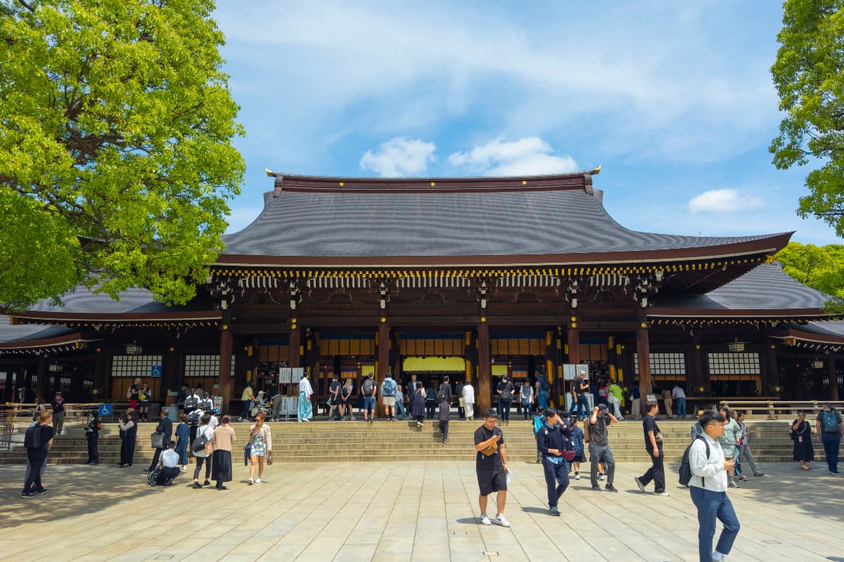 ศาลเจ้ากลางป่าใหญ่ใจกลางเมืองสุดร่มรื่น แค่เดินลอดเสาโทริอิไม้ยักษ์เข้าไปก็เหมือนหลุดออกจากความวุ่นวาย ไฮไลต์คือการถ่ายรูปกับกำแพงถังสาเกยักษ์ และการเขียนแผ่นไม้ขอพรเรื่องความรักและหน้าที่การงาน