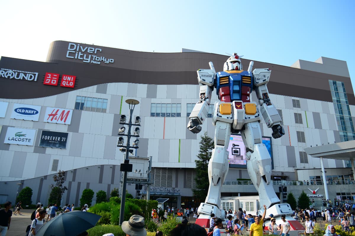 เกาะถมทะเลสุดไฮเทค ไปยืนอึ้งกับ ‘หุ่นกันดั้มยักษ์ (Unicorn Gundam)’ ที่สามารถแปลงร่างเปิดไฟได้ แล้วไปเดินเล่นริมชายหาดจำลอง และชมวิวสะพานสายรุ้ง (Rainbow Bridge) ยามเย็นที่เปิดไฟสะท้อนน้ำสวยงาม