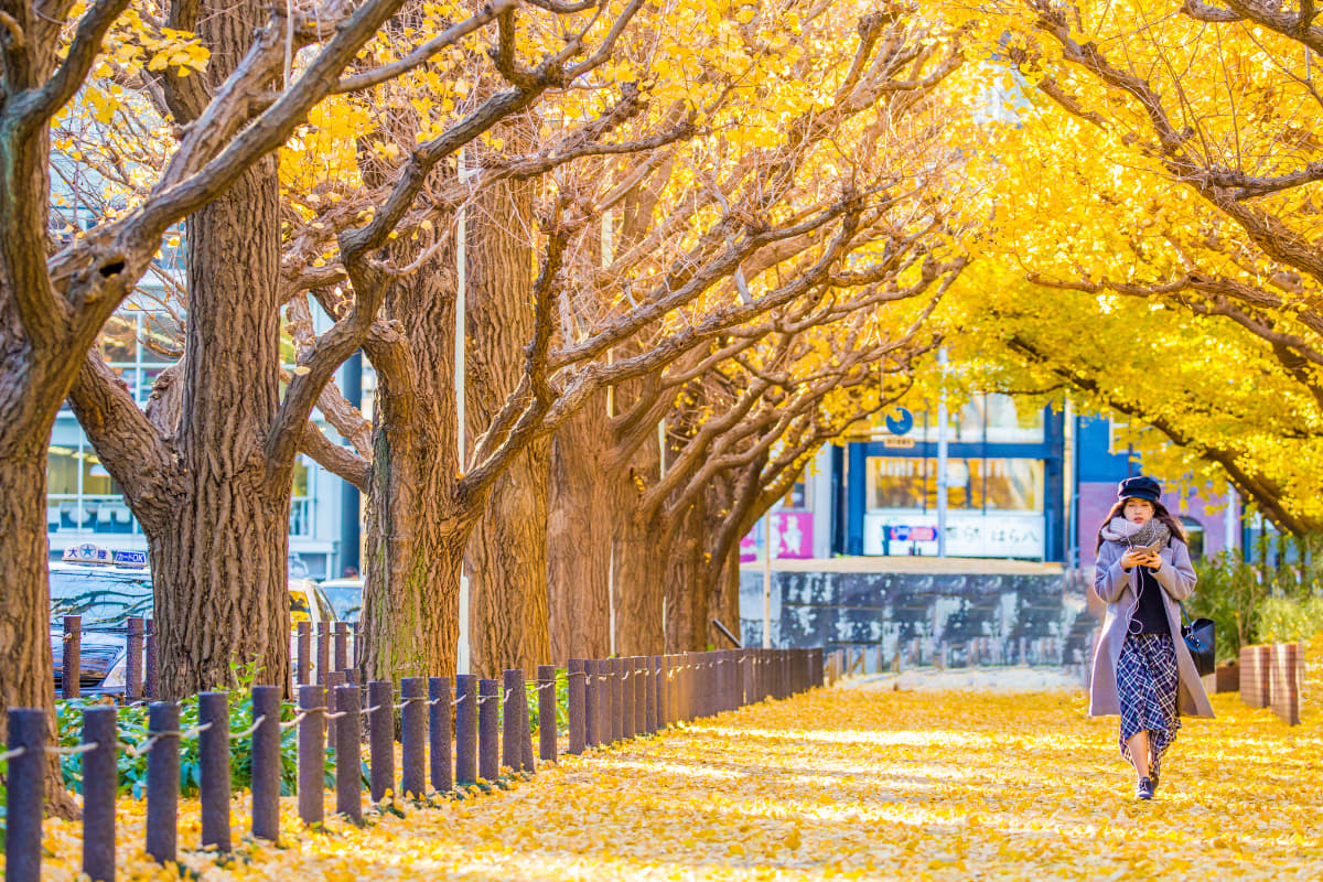 🍁 ฤดูใบไม้ร่วง (ก.ย. - พ.ย.) อากาศเริ่มเย็นลงและฟ้าโปร่ง (15°C - 22°C) เป็นอีกช่วงที่สวยตาแตก เพราะใบแปะก๊วยตามถนนจะเปลี่ยนเป็นสีเหลืองทอง และใบเมเปิลเปลี่ยนเป็นสีแดง