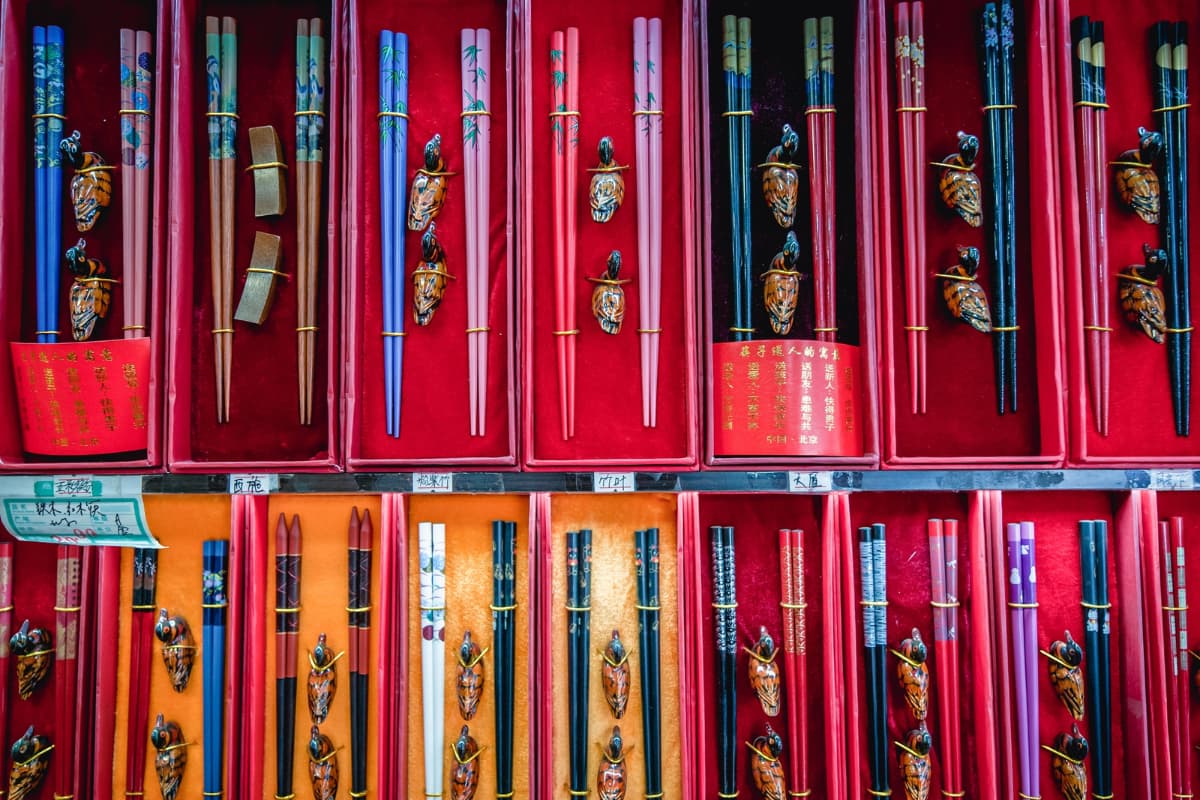 ของฝากสุดคลาสสิกที่สื่อถึงวัฒนธรรมการกินของจีน เพราะตะเกียบจีนมักทำจากไม้หรือพลาสติกคุณภาพดี มีลวดลายมงคลสวยงาม คนจีนนิยมซื้อเป็นคู่เพื่ออวยพรให้ผู้รับมีความสุขคู่เคียงกันตลอดไป เหมาะฝากผู้ใหญ่หรือใช้ตกแต่งโต๊ะอาหาร