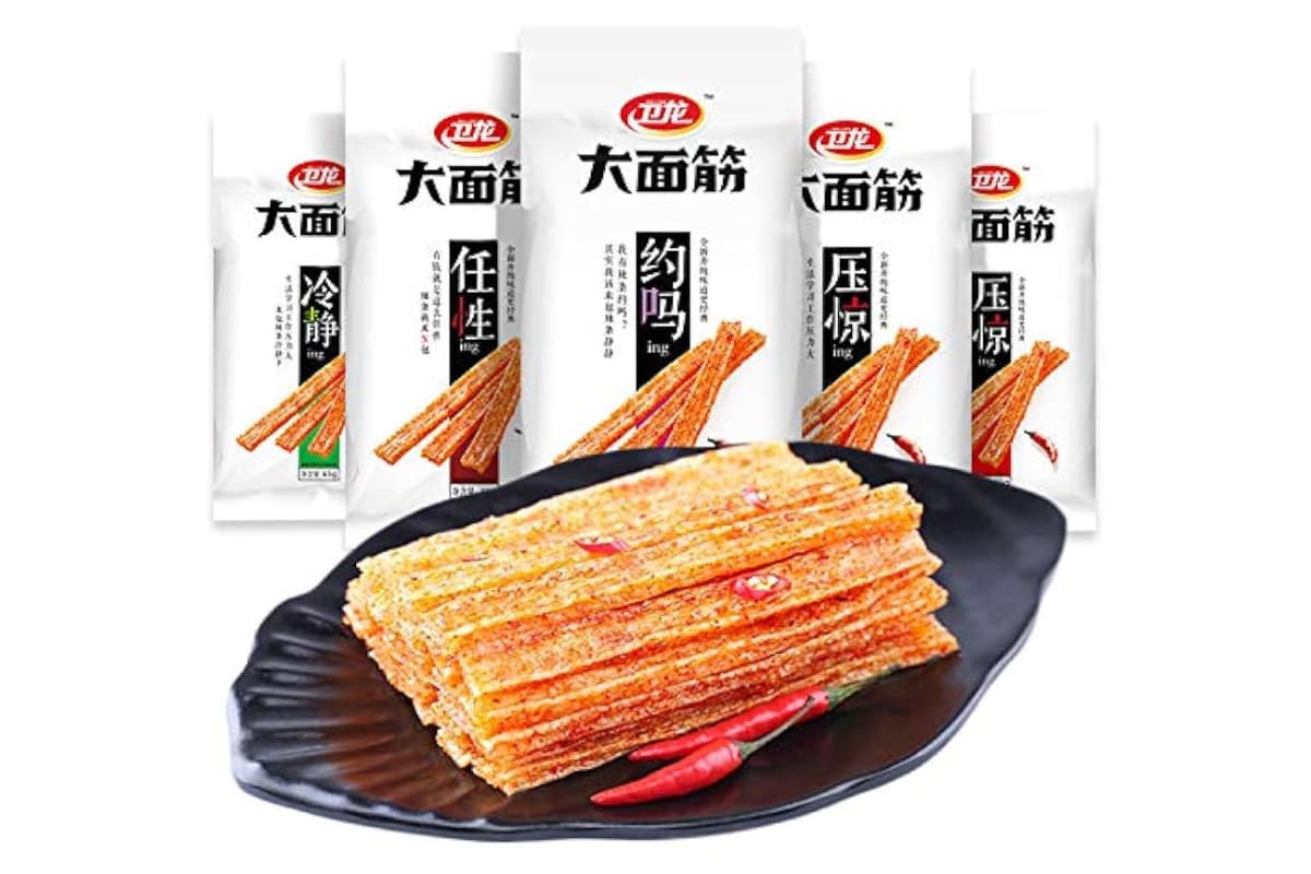 ของฝากจากจีน 2569 ที่เป็นไวรัลใน TikTok สุดๆ แป้งแท่งปรุงรสหม่าล่า รสชาติเผ็ดๆ เค็มๆ มันๆ เคี้ยวเพลินจนหยุดไม่ได้ โดยเฉพาะยี่ห้อ Wei Long (เว่ยหลง) คือตัวท็อปที่คนจีนนิยมกินกัน ซื้อไปกินเล่นเพลินๆ ก็ยังได้ ซึ่งนอกจากล่าเถียวของยี่ห้อนี้ที่นิยมแล้ว ขนมบุกรสหม่าล่าก็อร่อยถูกปากคนไทยเช่นกัน