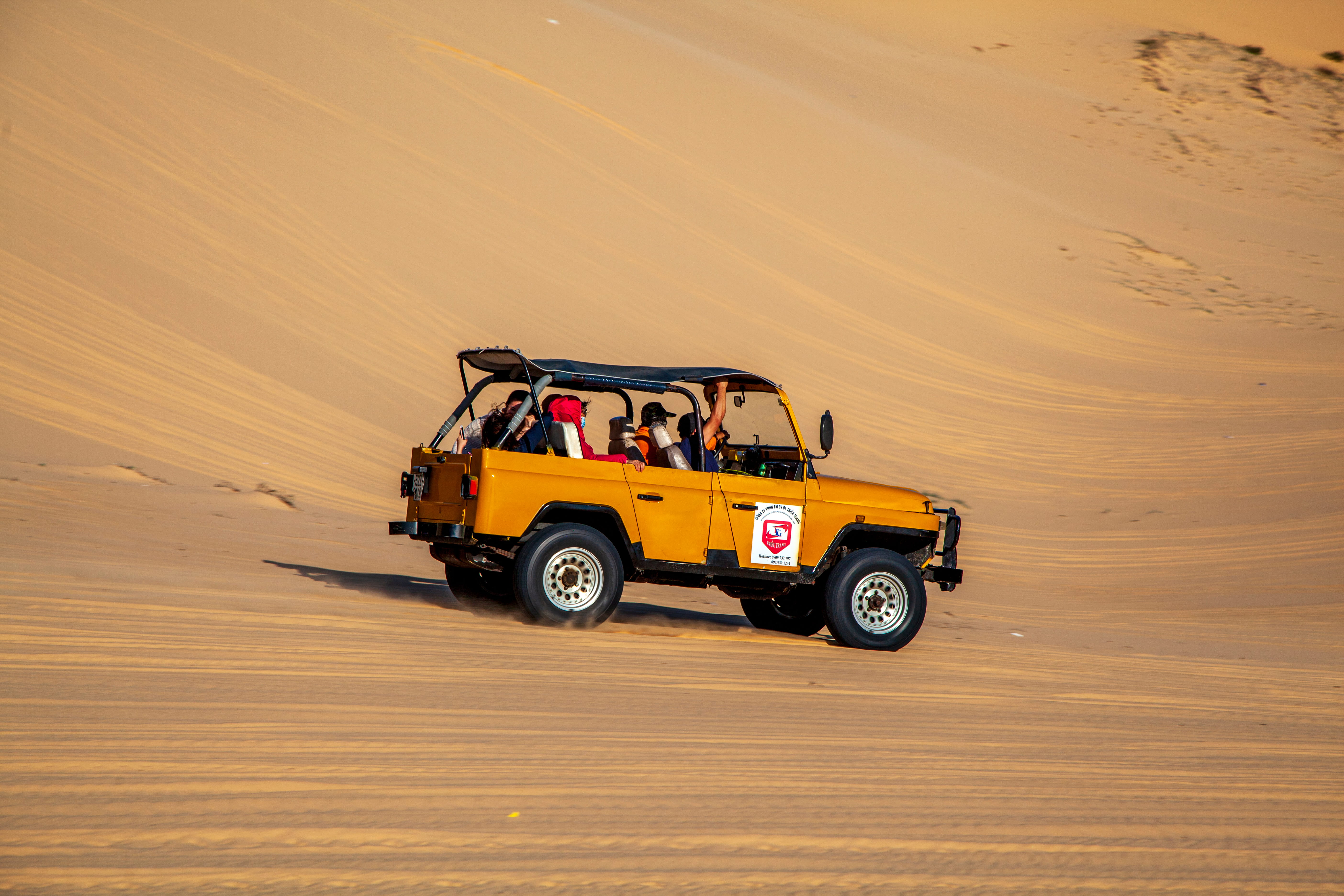 ส่วนช่วงบ่ายมีโปรแกรมนั่งรถ 4WD ตะลุยทะเลทราย Dune Safari ซึ่งใครเมารถ ควรทานยาแก้เมาล่วงหน้าอย่างน้อยครึ่งชั่วโมงได้เลยครับ ทะเลทรายอาหรับ เป็นทะเลทรายที่ใหญ่เป็นอันดับ 4 ของโลก (รองจาก1. Antarctic Desert / 2.Arctic Desert / 3. Sahara Desert) มีพื้นที่ประมาณ 2,300,000 ตารางกิโลเมตร โปรแกรมนี้ไม่แนะนำให้พลาดนะครับ ทั้งสนุกสนานและตื่นเต้นไปกับประสบการณ์อันแปลกใหม่จริง ๆ กับการนั่งรถตะลุยไปบนเนินทรายทั้งสูงและต่ำสลับกันไป มีเสียวมาก เสียวน้อยเป็นระยะครับ ก่อนที่จะจอดให้เราถ่ายรูปพระอาทิตย์ตกดิน หรือถ่ายรูปเหมือนมาถ่ายแบบกันเต็มที่ มีอูฐให้ลองขี่ถ่ายรูปด้วยครับ ก่อนที่จะพาเราไปในแคมป์กระโจมแบบอาหรับ