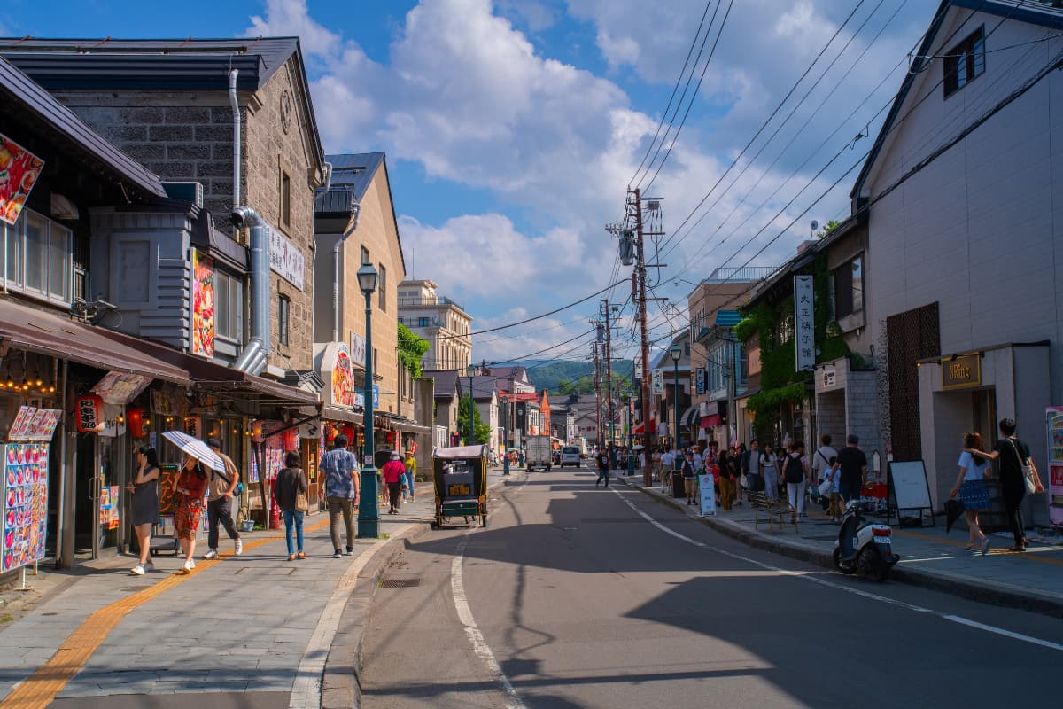 ถนนชอปปิงในโอตารุ แหล่งรวมร้านขนมชื่อดัง ไฮไลต์คือต้องไปกินชีสเค้กเนื้อละมุนที่ร้าน LeTAO กินชูครีมแป้งกรอบที่ Kitakaro และแวะซื้อเครื่องแก้วเป่ามือสไตล์โอตารุ