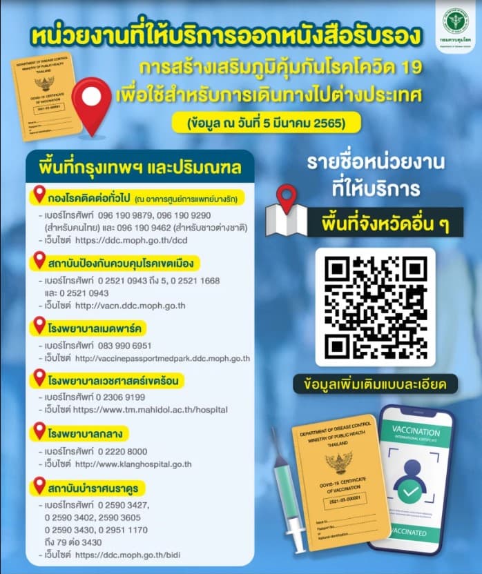 - ค่าใช้จ่ายในการขอออกหนังสือรับรอง Vaccine Passport 50 บาทต่อ 1 เล่ม