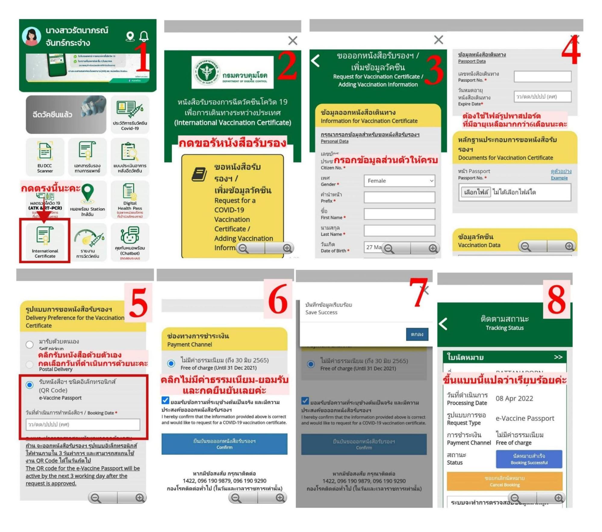 3. กรอกข้อมูล และอัปโหลดเอกสารให้ถูกต้องและครบถ้วน ซึ่งข้อมูลต้องเป็นภาษาอังกฤษเท่านั้น ตรวจสอบข้อมูลการรับวัคซีนถ้าถูกต้องก็กดยืนยันได้เลย