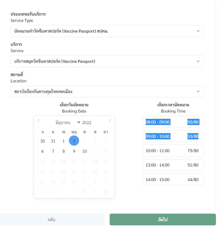 2.เลือกวันเวลานัดรับเอกสาร จากนั้นกดถัดไป