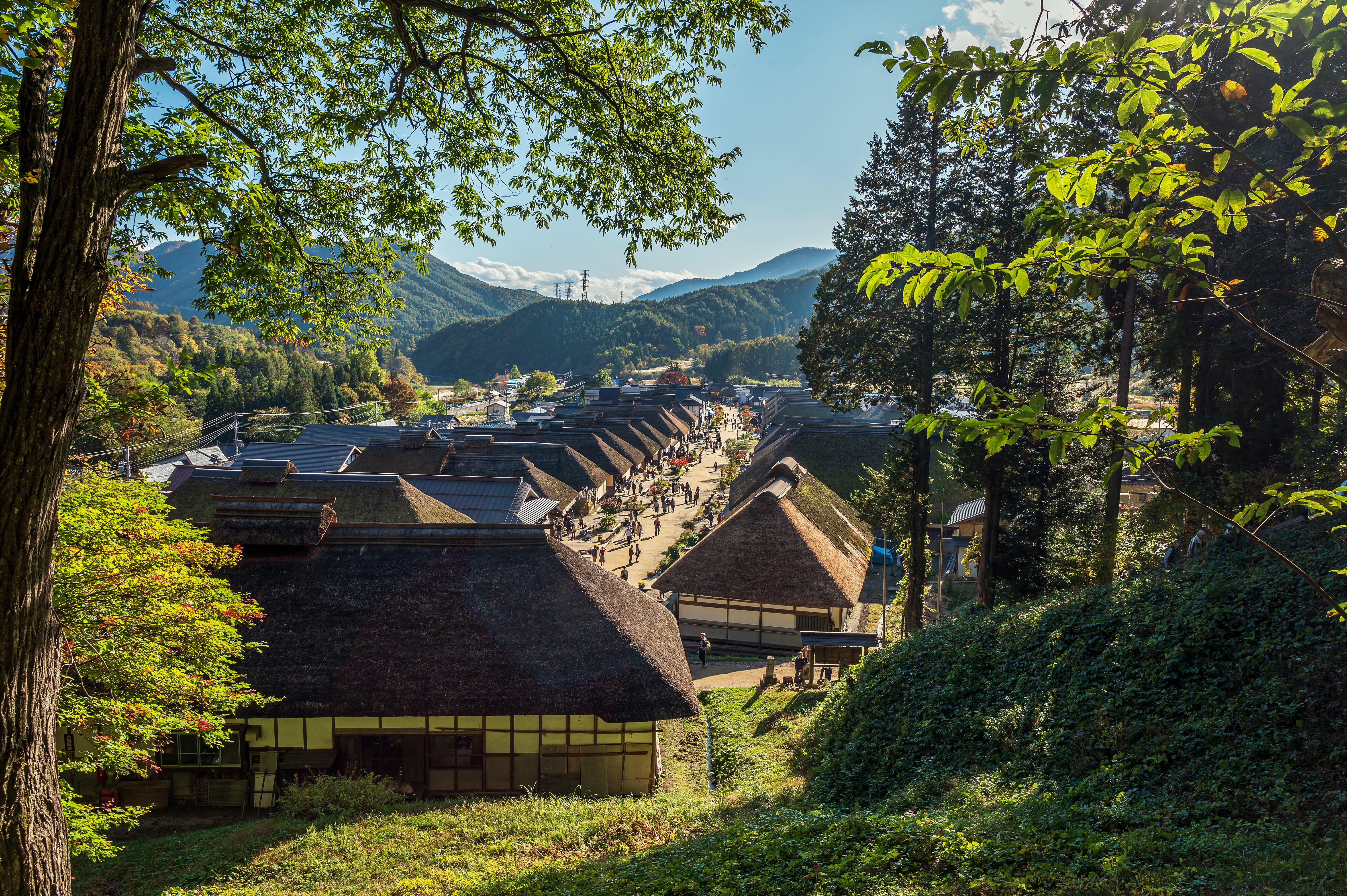 บ้านโบราณที่อดีตเคยเป็นเมืองสำคัญในยุคเอโดะถูกสร้างเมื่อหลายร้อยปีก่อน เป็นบ้านชาวนาญี่ปุ่นโบราณที่มุงหลังคาทรงหญ้าคาหนาๆ เรียงรายกันสองฝั่งกินระยะทางประมาณ 500 เมตร โดยรวมมีบ้านโบราณประมาณ 40-50 หลัง ได้รับการขึ้นทะเบียนเป็นเขตอนุรักษ์สิ่งปลูกสร้างอันทรงคุณค่าของชาติ ซึ่งในปัจจุบันหมู่บ้านโบราณหลายหลังในโออุจิ จูคุได้รับการบูรณะใหม่ จนกลายเป็นร้านขายของที่ระลึก ร้านค้าขายสินค้าพื้นเมือง ร้านอาหารและที่พักแบบญี่ปุ่นเพื่อดึงดูดนักท่องเที่ยว (ไม่รวมค่าเข้าชม โออุจิจูคุ มะชินะมิ เท็นจิคัง ท่านละ 250 เยน)