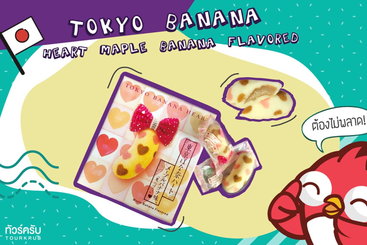 หลังจากที่กลายเป็นกระแสโด่งดังในบ้านเราเมื่อหลายปีก่อน กับ โตเกียวบานาน่า หลายคนถึงกับต้องฝากเพื่อน ฝากญาติ หรือแม้กระทั้งพรีออเดอร์เพราะอยากจะลองลิ้มชิมรสความอร่อยอันโด่งดัง ซึ่งรสชาติที่สายสืบทัวร์ครับได้มีโอกาสชิมนั้น พิเศษกว่าโตเกียวบานาน่าทั่วไป เพราะมีการเพิ่มความหอมหวานของไส้ด้านในด้วยรสชาติของเมเปิ้ล จึงทำให้มีกลิ่นและรสสัมผัสที่หวานหอมกว่าเดิม มารูปทรงอันเป็นเอกลักษณ์ของโตเกียวบานาน่า พร้อมลวดลายหัวใจเล็กๆ เพิ่มความน่ารักมากขึ้นไปอีกครับผม!