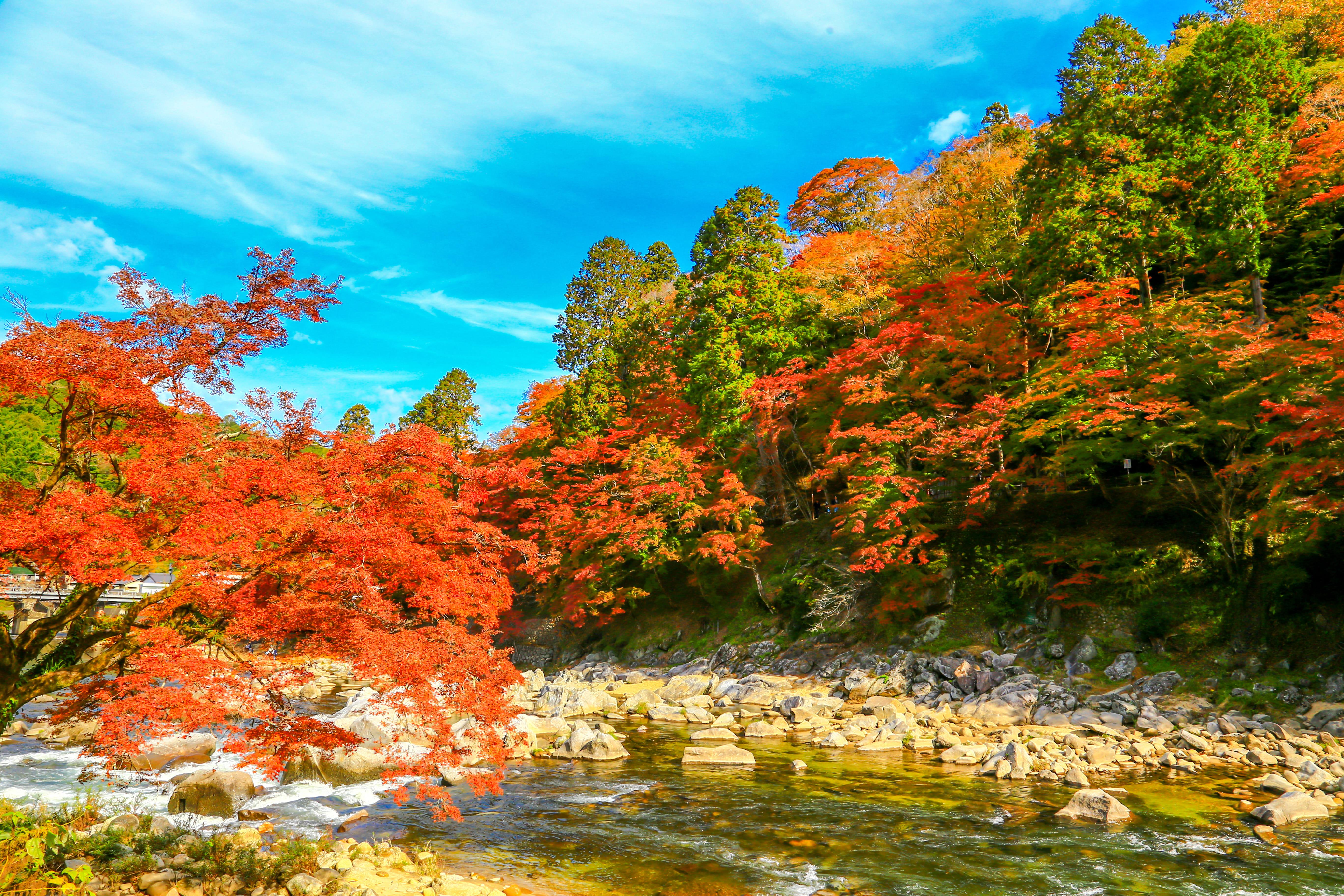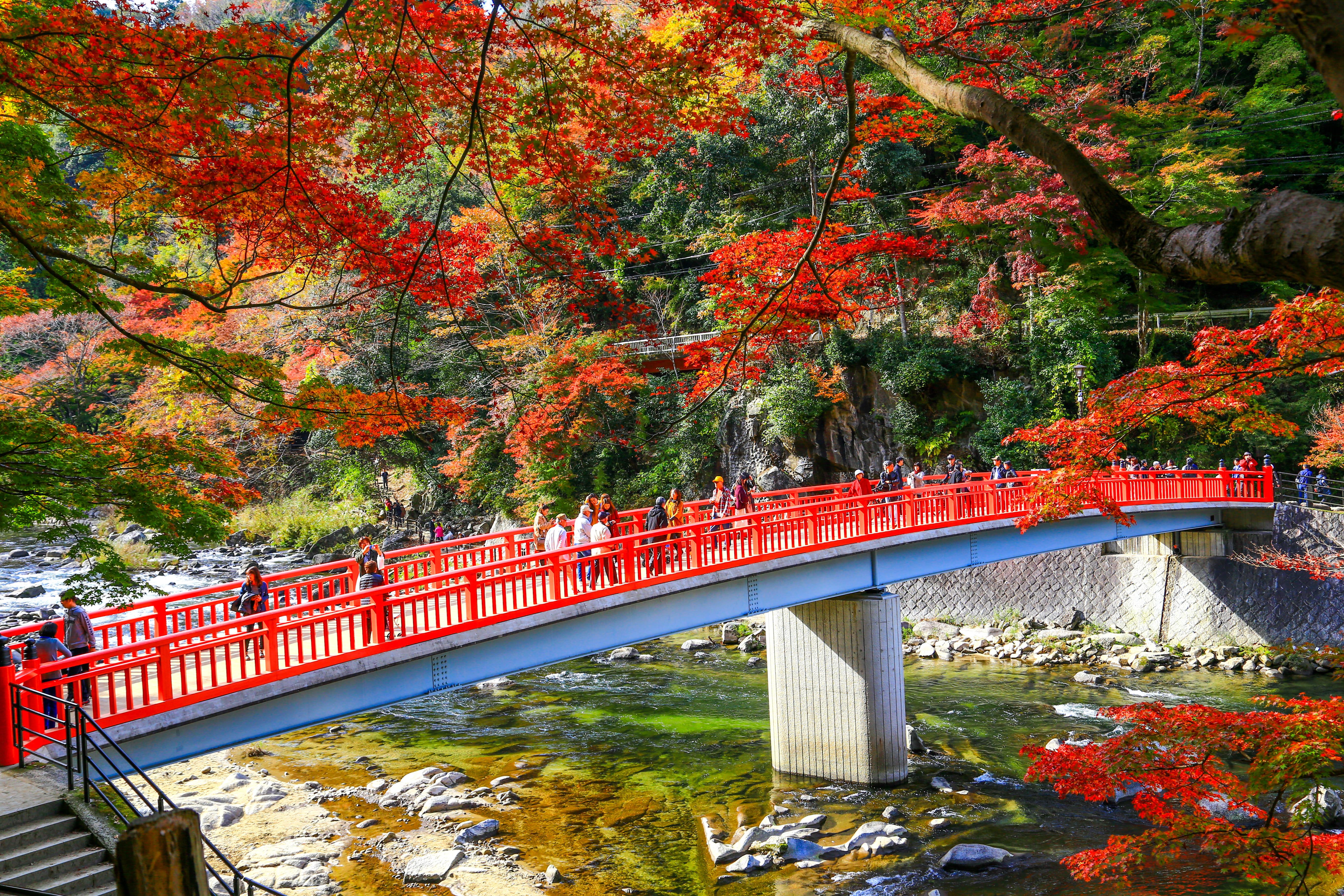 จุดที่สวยที่สุดคือเส้นทางริมแม่น้ำโทโมเอะ สะพานที่เป็นสัญลักษณ์ประจำโครังเค คือ สะพานไม้ไทเกะสึเคียว ซึ่งเป็นจุดยอดฮิตสำหรับการถ่ายภาพอันสวยงาม