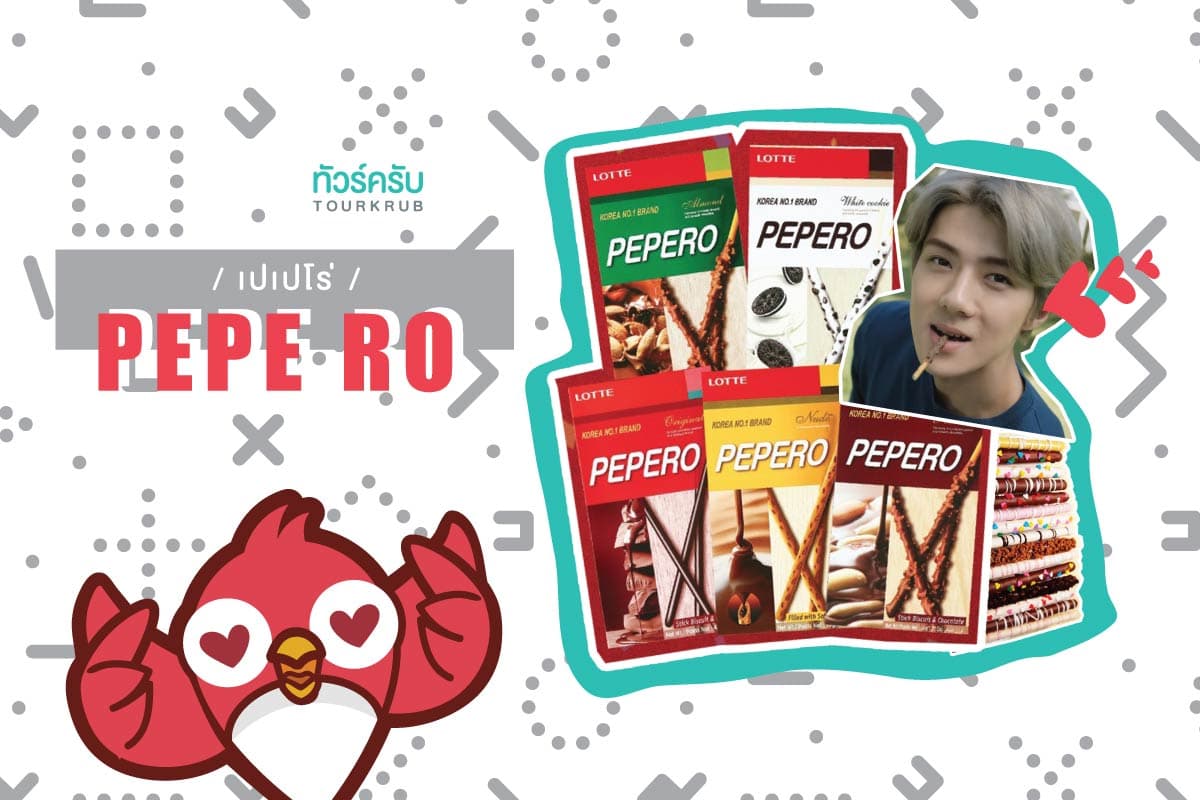 หรือคนไทยเรียกกันว่า ป็อกกี้ นั่นเองครับ ซึ่ง เปเปโรเป็นบิสกิสแท่งอบกรอบเคลือบด้วยรสชาติต่างๆ ไม่ว่าจะเป็น ช็อคโกแลต ไวท์ช็อคโกแลต ร่วมกับถั่วต่างๆ แต่เปเปโรเกาหลีนั้นถือเป็นขนมเกาหลีที่มีเรื่องราวไม่ธรรมดานะครับ ทัวร์ครับขอบอก! เพราะที่เกาหลีนั้นมี วันเปเปโรเดย์ (Pepelo Day) ในวันที่ 11 เดือน 11 คู่รัก หนุ่มสาวจะเอาขนมเปเปโรมาให้กันและเพื่อแสดงความรักที่มีต่อกันนั่นเอง ดังนั้นหากใคร แอบชอบใครอยู่ ก็สามารถซื้อเปเปโร่มาฝากคนๆนั้น ถือเป็นการแอบบอกชอบไปในตัวนั่นเองครับ