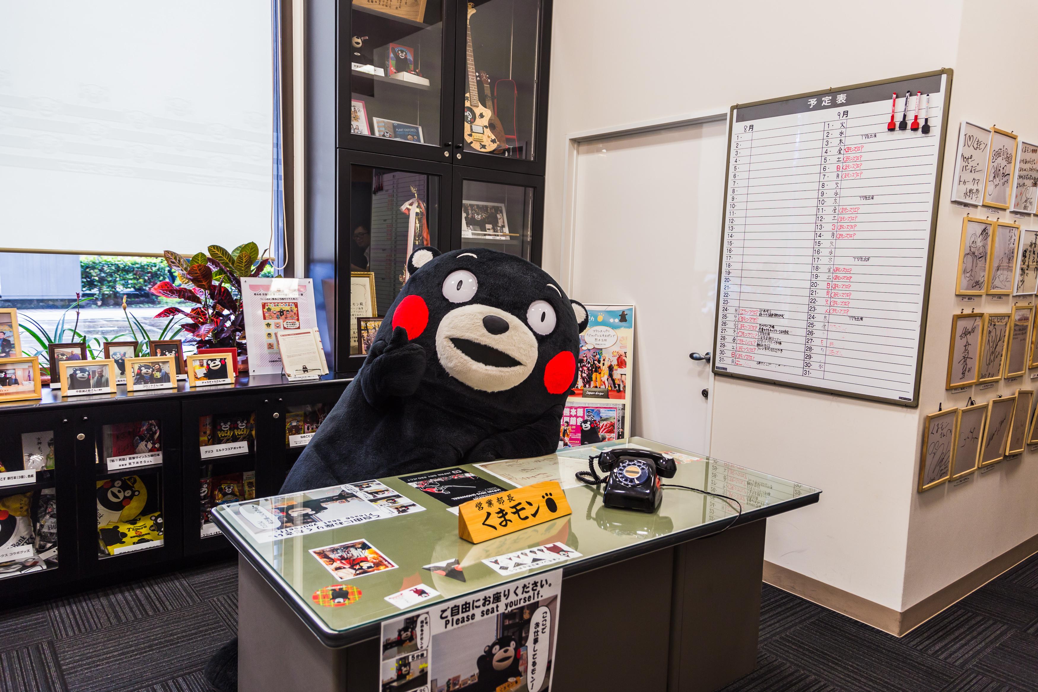 สำหรับใครที่เป็นแฟนพันธุ์แท้พี่หมีคุมะมง ก็สามารถแวะไปเจอพี่เขาได้ที่ Kumamoto Station เราจะได้เห็นภาพของพี่หมีคุมะมงอยู่ทั่วทุกหนแห่งในจังหวัดคุมาโมโต้ หรือจะแวะไป เยี่ยมสถานที่ทำงานของคุมะมง ก็สามารถไปได้ที่