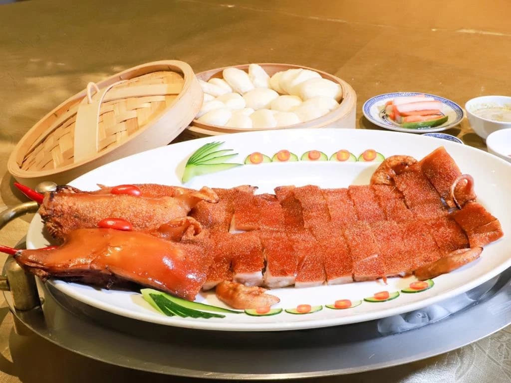 อาหารจีนมีเป็ดปักกิ่งแล้ว ก็ต้องมีหมูหันด้วยนะครับ ถึงจะครบสูตรโต๊ะอาหารจีน ซึ่งบอกเลยว่า ไม่มีอะไรจะฟินไปกว่า การได้ส่งหมูที่ย่างมาจนหนังกรอบ แต่เนื้อกลับนุ่ม เข้าปากแล้วล่ะครับ ทานเพลินๆ จนลืมแคลอรี่เลยทีเดียว แต่ก็ยอมนะครับ อิอิ