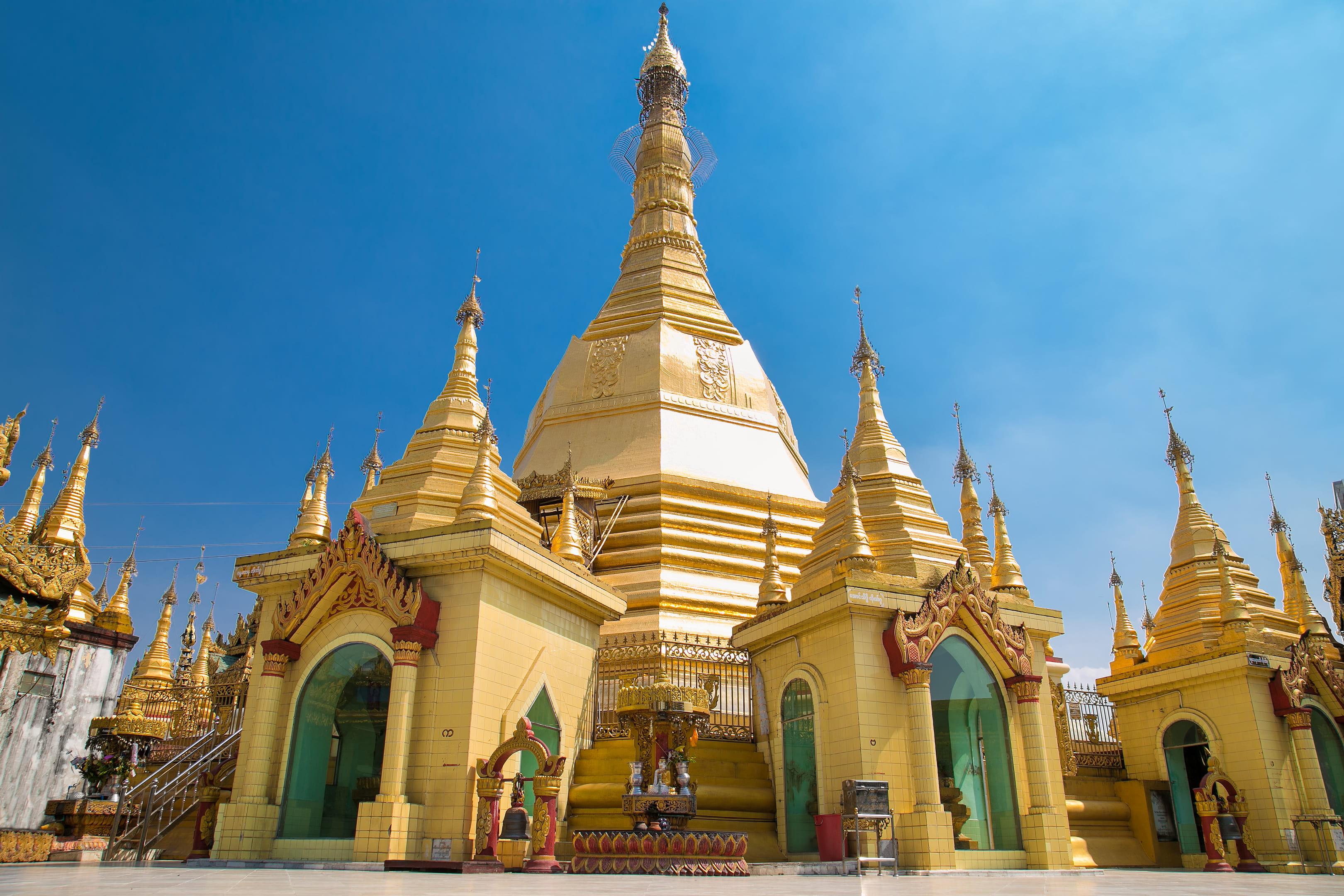 เจดีย์สุเล (Sule Pagoda) เจดีย์เก่าแก่อายุมากกว่า 2,000 ปีที่อยู่คู่เมืองย่างกุ้งมาอย่างช้านาน ยาวนานกว่ามหาเจดีย์ชเวดากองซะอีก กับเจดีย์สุเล เจดีย์ใจกลางเมืองที่แท้ทรู ด้วยตั้งอยู่บนเกาะกลางถนนสายหลักของเมือง ราวกับเป็นอนุสาวรีย์อีกแห่งหนึ่งของเมือง ด้วยทำเลที่ตั้งที่ไม่เหมือนใครที่ว่าโดดเด่นสะดุดทุกสายตาแล้ว รูปลักษณ์ภายนอกของตัวเจดีย์ก็เด่นสง่าตระการตาด้วยรูปทรงแปดเหลี่ยมสีทองอร่าม กับความสูงกว่า 46 เมตรอันโอ่อ่าที่พาให้สะกดสายตาทุกคู่ อันเป็นที่ประดิษฐานเส้นพระเกษาธาตุของพระพุทธเจ้าอันควรค่าแก่การสักการะ