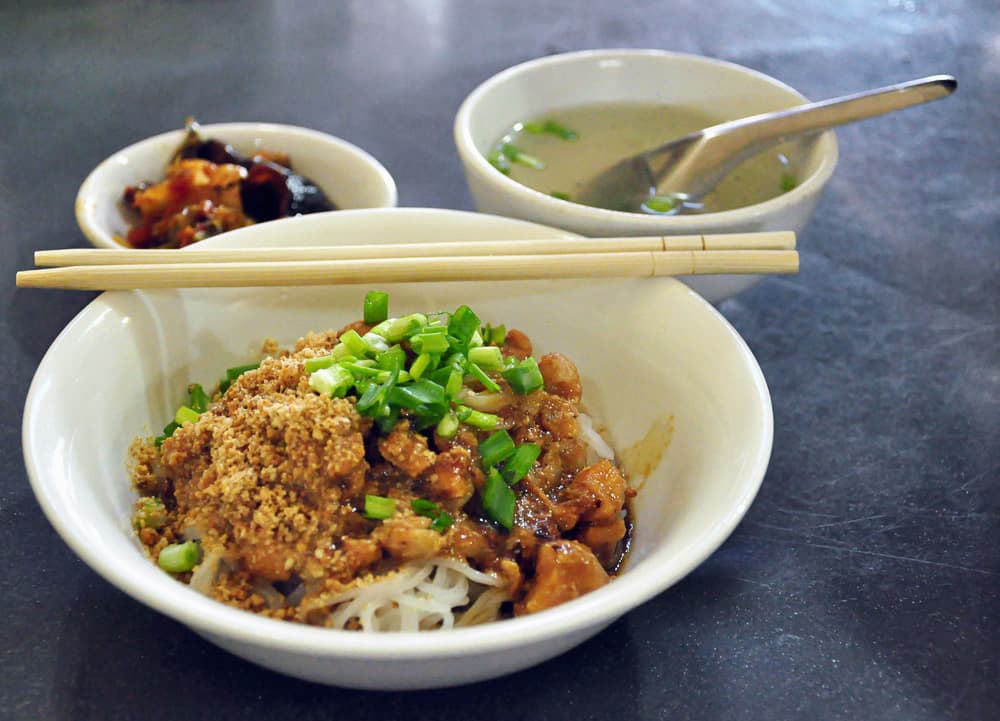 ยังอยู่กันที่เมนูเส้นกับเมนู Shan-style Noodles หน้าตาจะคล้ายๆ กับก๋วยเตี๋ยวเมนูอาหารไทยบ้านเรา ซึ่งในจานจะประกอบไปด้วยเส้นก๋วยเตี๋ยวสุดนุ่มพร้อมกับน้ำซุปสุดเข้มข้นมีรสชาติออกไปทางเผ็ดที่ได้จากการเคี่ยวไก่หรือหมูราดมาพอขลุกขลิก แล้วยิ่งมีผักดองมาให้กินเล่นด้วยยิ่งทำให้เมนูนี้กลายเป็นเมนูที่บอกได้เลยว่าต้องติดใจ ซึ่งเมนูนี้ถือว่าหาได้ไม่ยากในพม่า เป็นเมนูง่ายๆแถมราคาไม่แพงอีกด้วย รับรองว่าคุณจะลืมรสชาติก๋วยเตี๋ยวบ้านเราไปเลยล่ะ