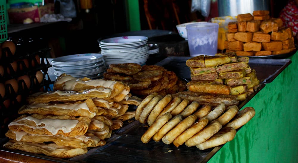 มาถึงเมนูทอดๆ กันบ้างอย่างเมนู Deep-fried Stuff เป็นอาหารที่ชาวพม่าชื่นชอบและเป็นที่นิยมไม่ต่างจากบ้านเราเลย เพราะของทอดคือเดอะเบสท์! ซึ่งอาหารทอดยอดนิยมนี่ก็มีหลากหลายเมนู โดยเราสามารถหาทานได้ง่ายๆ ตามร้านขายของทอดข้างทาง หรือไม่ก็ร้านน้ำชา เมนูที่นิยมสั่งกันไม่ว่าจะเป็นกะหรี่ปั๊บทอด เปาะเปี๊ยะทอด และยังมีเมนูประเภทของคาว ของหวาน ขนมปัง และก๋วยเตี๋ยวที่โปะหน้าเต็มไปด้วยของทอด ทำให้ประเทศพม่ามีร้านขายอาหารทอดเป็นจำนวนมาก ถือเป็นอาหารยอดนิยมของชาวพม่าเลยก็ว่าได้ สำหรับคนที่ชื่นชอบของทอดคงไม่อยากพลาดเมนูนี้อย่างแน่นอนรับรองว่าคุณจะฟินตัวแตกไปเลย