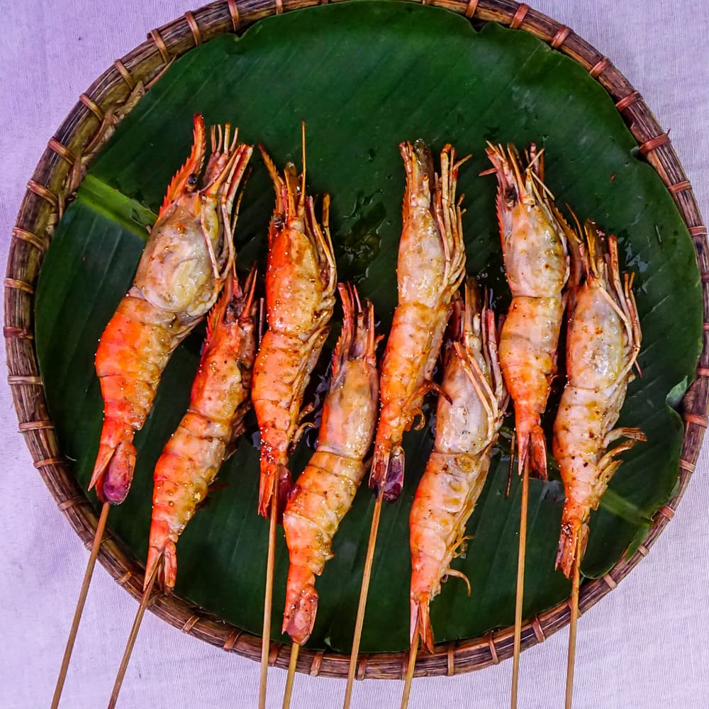 เมนูที่คนไทยหลายคนคงรู้จักกันดีและชื่นชอบเป็นอย่างมากกับเมนู กุ้งแม่น้ำเผา ก็แหม เมืองเขาก็ชื่อย่างกุ้ง กุ้งเผา กุ้งย่างนี่ก็ต้องเด็ดแท้แน่นอน เหมาะสำหรับคนที่ทานยากและไม่ชอบทานอะไรแปลกใหม่ เราแนะนำเมนูนี้เลยเอาตัวรอดได้ดีในต่างแดน เป็นอาหารขึ้นชื่อของพม่าเลยก็ว่าได้ที่ใครๆหลายคนต่างบอกกันว่าไปพม่าต้องกินกุ้งเผาให้ได้ เราขอแนะนำให้ลองกุ้งแม่น้ำตัวใหญ่ๆ ที่มาพร้อมกับมันกุ้งที่หัวไหลเยิ้มๆ แค่นึกภาพก็ฟินแล้ว ยิ่งเนื้อของกุ้งแน่นเวอร์ พูดแล้วอยากจะบินไปทานอีกสักทีเลย สามารถหาได้ทานได้หลายร้านเลยมีบริการเผาให้ด้วย ว่าด้วยเรื่องน้ำจิ้มของพม่าจะออกรสชาติเผ็ดเปรี้ยวโดดเด่นอย่างมาก แต่แอบกระซิบว่าไม่มีอะไรสู้น้ำจิ้มซีฟู๊ดได้จริงๆ ที่หนึ่งในใจคนไทย