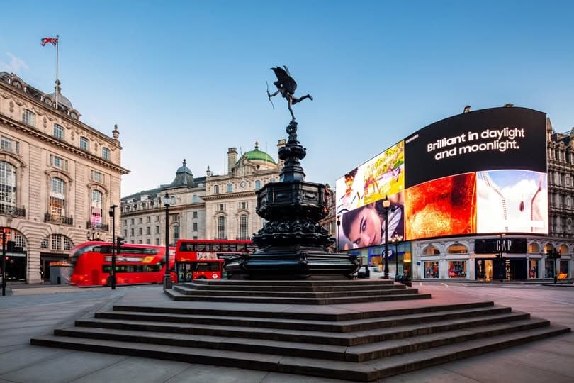 จัตุรัสลานน้ำพุของลอนดอนบนวงเวียนระหว่างถนนพิคาเดลีและถนนชาฟเทสเบอรี โดยที่นี่มีประติมากรรมสำริดบนยอดน้ำพุที่มีชื่อเสียงอยู่รูปหนึ่งนั่นคือประติมากรรมรูปเทพเจ้าอีรอส (Eros) หรือกามเทพคิวปิดตอนโตแล้ว ซึ่งไม่ต้องอธิบายก็เป็นที่ทราบกันดีว่าคิวปิดมีชื่อเสียงด้านความรักขนาดไหน โดยเทพเจ้าอีรอสรูปนี้กำลังอยู่ในท่าแผงศรอย่างงดงาม ในเวลาเย็นๆ จะมีคู่หนุ่มสาวชาวอังกฤษมากมายมานั่งชมวิวเมืองจู๋จี๋และถ่ายรูปกับลานน้ำพุนี้กันอย่างรักใคร่ ใครที่มาขอพรก็ลองกุมมือต่อหน้ารูปปั้นนี้ดู คิวปิดอาจยิงศรไปปักในดวงใจของใครสักคนที่คุณปรารถนาอยู่ก็เป็นได้
