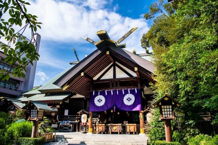 ศาลเจ้าชื่อดังแห่งโตเกียว ที่หนุ่มสาวนิยมมาขอพรเรื่องความรัก เพราะมีความเชื่อว่าศาลเจ้าแห่งนี้มีเทพเจ้าผูกรัก ‘Enmusubi’ สถิตอยู่ นอกจากเทพเจ้าของที่นี่จะเป็นเทพแห่งความรักแล้ว ศาลเจ้าแห่งนี้ยังมีชื่อเสียงเรื่องเครื่องรางที่ช่วยส่งเสริมเรื่องความรัก ทั้งเรื่องการแต่งงานและคู่ครอง เซียมซีรูปเด็กผู้หญิงใส่กิโมโนของที่นี่ก็น่ารักมาก ๆ แถมยังทำนายเรื่องความรักได้แม่นด้วย ดูทัวร์ญี่ปุ่น
