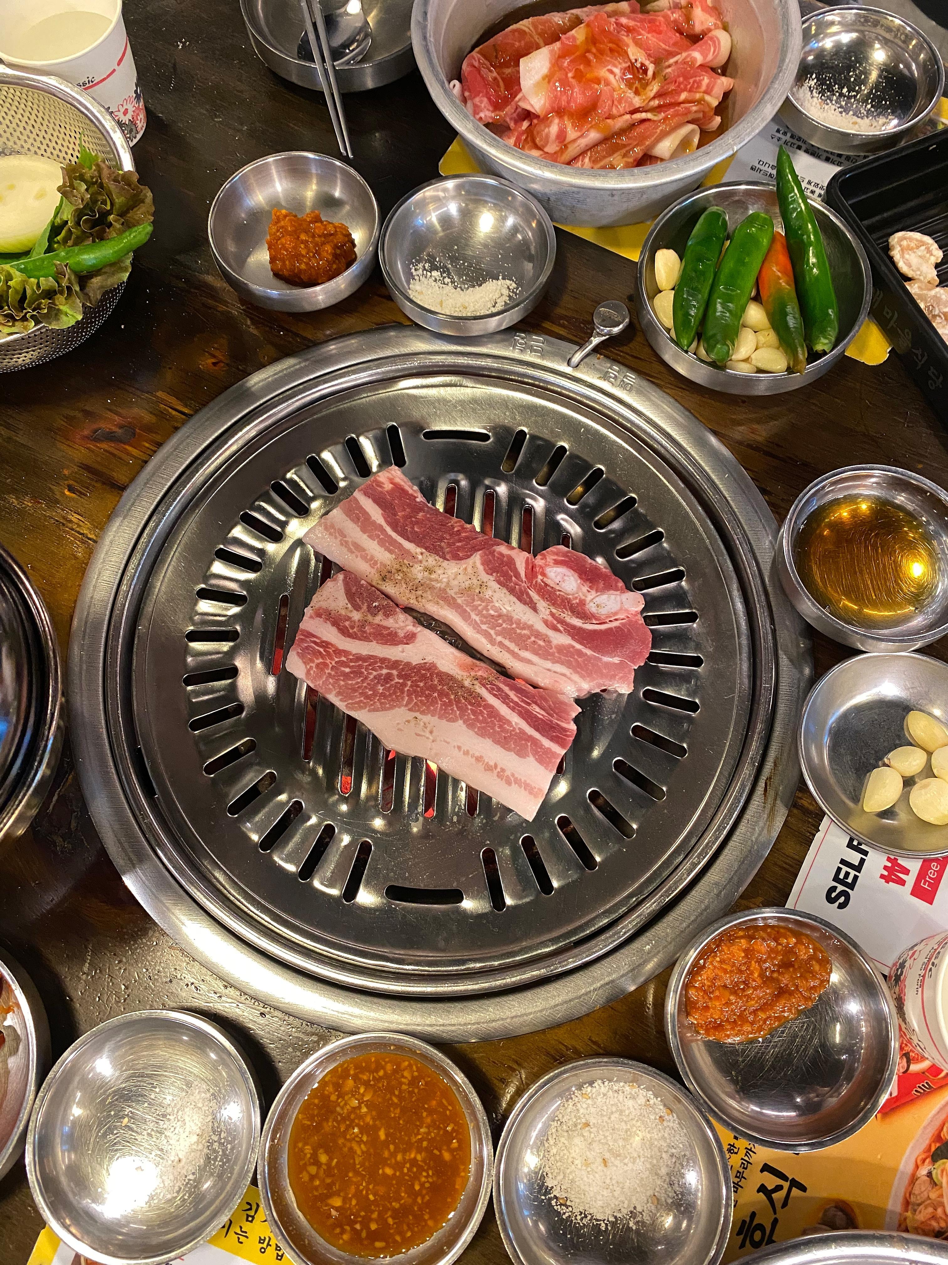 ร้านหมูย่างเกาหลีชื่อดังของย่านเมียงดง อยู่บนชั้น 3 ของร้าน Nature Republic นะครับ ที่นี่นอกจากหมูย่างแล้ว ไลน์อาหารอื่นๆ ก็มีให้เลือกหลากหลาย ไม่ว่าจะเป็นสลัด สปาเกตตี้ ต๊อกบกกี แถมหมูยังหั่นบางกำลังพอดี แช่ไว้ในตู้รอเราไปหยิบ ไม่ต้องกลัวเรื่องหมูเหี่ยวเลยครับ ร้านนี้เลยกลายเป็นร้านโปรดของเราไปเลย ชอบมากๆ
