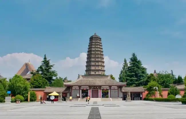 หรือวัดพระถังซัมจั๋งที่คนไทยเรียกกัน แค่เห็นรูปปั้นพระถังซัมจั๋งขนาดใหญ่ ตั้งอยู่ด้านหน้าวัดก็แสดงว่ามาไม่ผิดที่แน่นอน โดยก่อนที่พระถังซัมจังจะออกเดินทางไปยังชมพูทวีป ท่านเคยบวชและจำพรรษาอยู่ที่วัดห่านป่าใหญ่แห่งนี้ ซึ่ง มีเจดีย์ขนาด 7 ชั้นตั้งตระง่านอยู่กลางวัด เดิมทีนั้นมีถึง 10 ชั้น แต่หลังจากโดนแผ่นดินไหว ก็พังทลายมาเหลือเพียง 7 ชั้น และถ้าสังเกตดีดีจะเห็นเจดีย์จะมีความเอียงหน่อยๆ (แต่ไม่ถึงขนาดหอเอนปิซ่านะคะ) ซึ่งเป็นอีกหนึ่งผลกระทบจากแผ่นดินไหวนั่นเองค่ะ