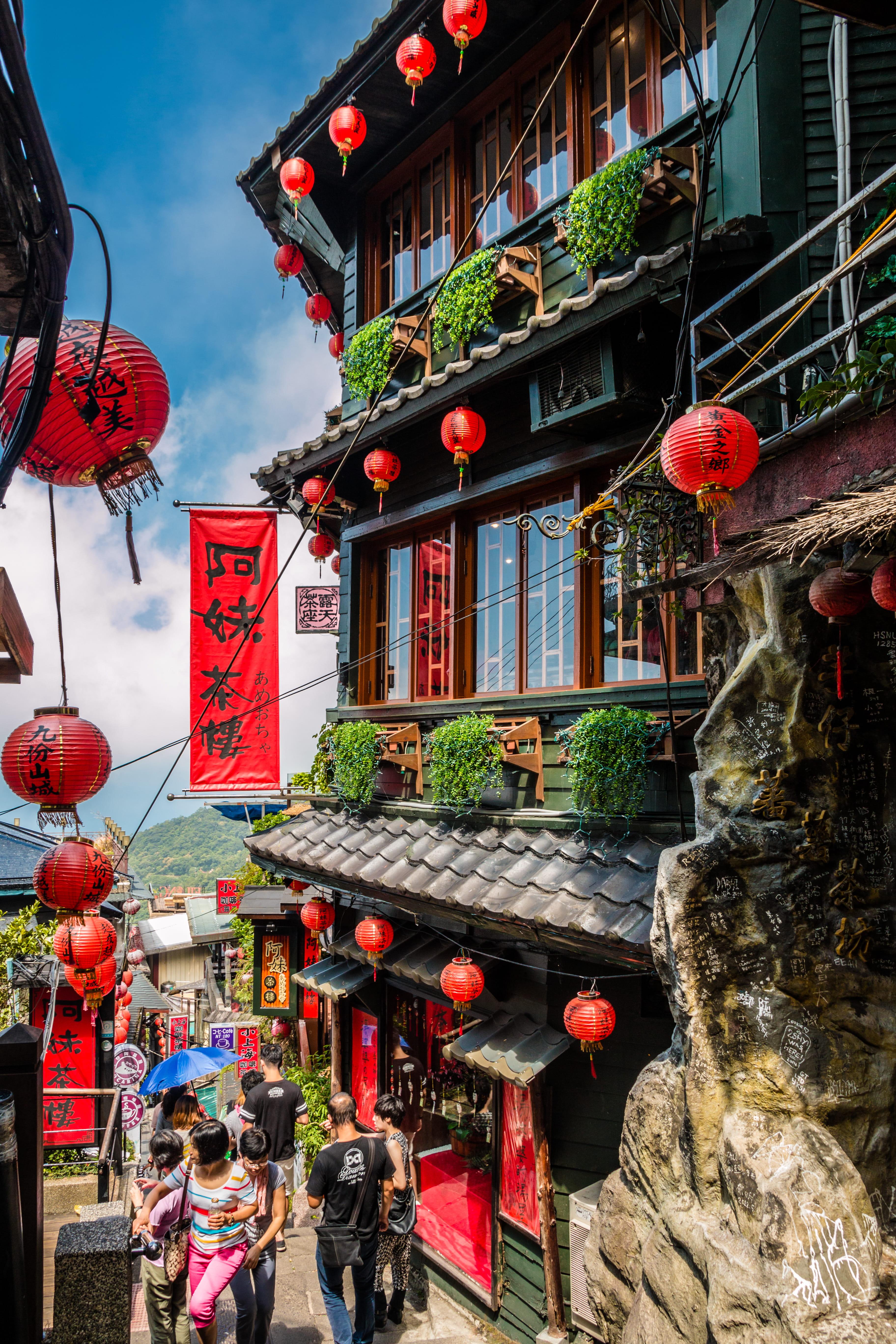 เมื่อถ่ายรูปกันจนพอใจแล้วเราก็มุ่งหน้าต่อไปที่ จิ่วเฟิ่น (Jiu Fen Old street) แลนด์มาร์กยอดฮิตเมืองเก่าของไต้หวันที่ผู้คนต่างเดินทางมาเช็คอินเพื่อถ่ายรูปและลิ้มลองรสชาติอาหารไต้หวันที่มีให้เลือกทานอย่างมากมาย โดยจุดถ่ายรูปสุดชิคที่พลาดไม่ได้เลยก็คือ บริเวณเนินเขาหน้าร้านชา Ah Mei ที่เป็นเหมือนแลนด์มาร์คและสัญลักษณ์ของจิ่วเฟิ่น อีกทั้งยังเป็นจุดที่สามารถเห็นวิวทัศนียภาพโดยรอบได้สวยงามมากที่สุดอีกเช่นกัน ซึ่งใครไปถึงแล้วก็เตรียมกล้องถ่ายรูปไว้ให้ดี เนื่องจากทางค่อนข้างแคบแต่เต็มไปด้วยผู้คนที่ยืนออกันถ่ายรูปมากมาย เราเลยอยากแนะนำให้หาท่าเตรียมไว้ก่อน เพื่อไม่เป็นการเสียเวลาในการถ่ายรูปแก้หลายช็อต นั่นเอง