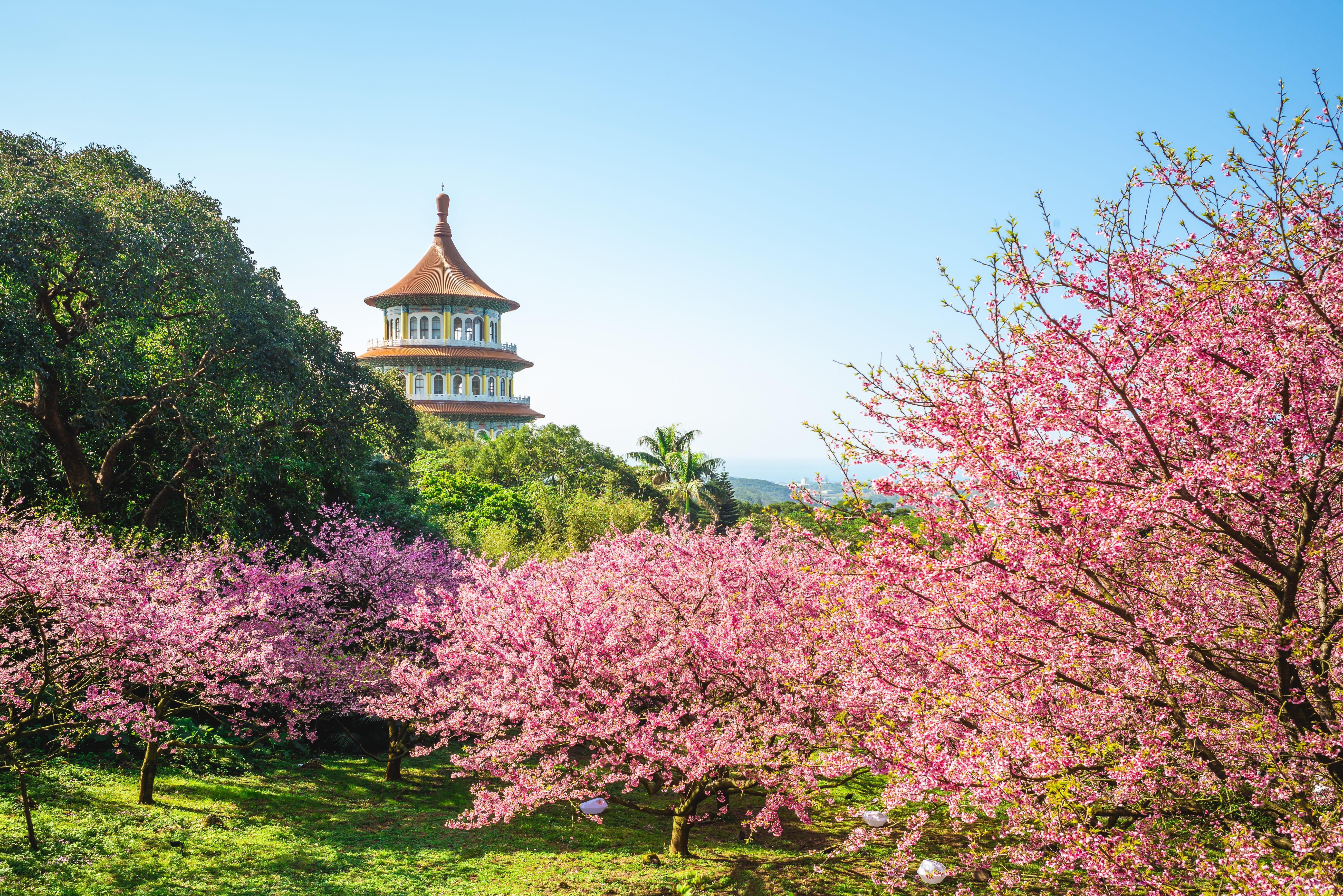 มาต่อกันที่ Wuji Tianyuan Temple เป็นจุดชมซากุระที่สวยงามอีกแห่งหนึ่งของไต้หวัน ตั้งอยู่ในเขตตั้นสุย เมืองซินเป่ย ไม่ไกลจากไทเป ถือเป็นที่ยอดนิยมของชาวต่างชาติและชาวไต้หวัน โดยจุดเด่นของสถานที่แห่งนี้คงเป็นการชมดอกซากุระบาน สำหรับจุดชมซากุระของที่นี่จะมีด้วยกันสองจุด คือ บริเวณทางเดินก่อนเข้าวัด และบริเวณด้านหลังวัด แต่เราขอแนะนำให้คุณให้เสื้อผ้าหนาๆเพราะสถานที่แห่งมีอากาศค่อนข้างหนาวและอาจมีฝนตก ช่วงเวลาที่เหมาะแก่การมาชมดอกซากุระบานคงเป็นช่วงเดือนมีนาคม โดยสามารถเดินทางมายัง Wuji Tianyuan Temple ได้โดยนั่งรถไฟ MRT ไปลงสถานี Tamsui แล้วต่อรถบัสไปยังวัดเทียนหยวน มีรับ-ส่งในช่วงเวลา 08.00-17.00 น. ใช้เวลาประมาณ 15 นาที