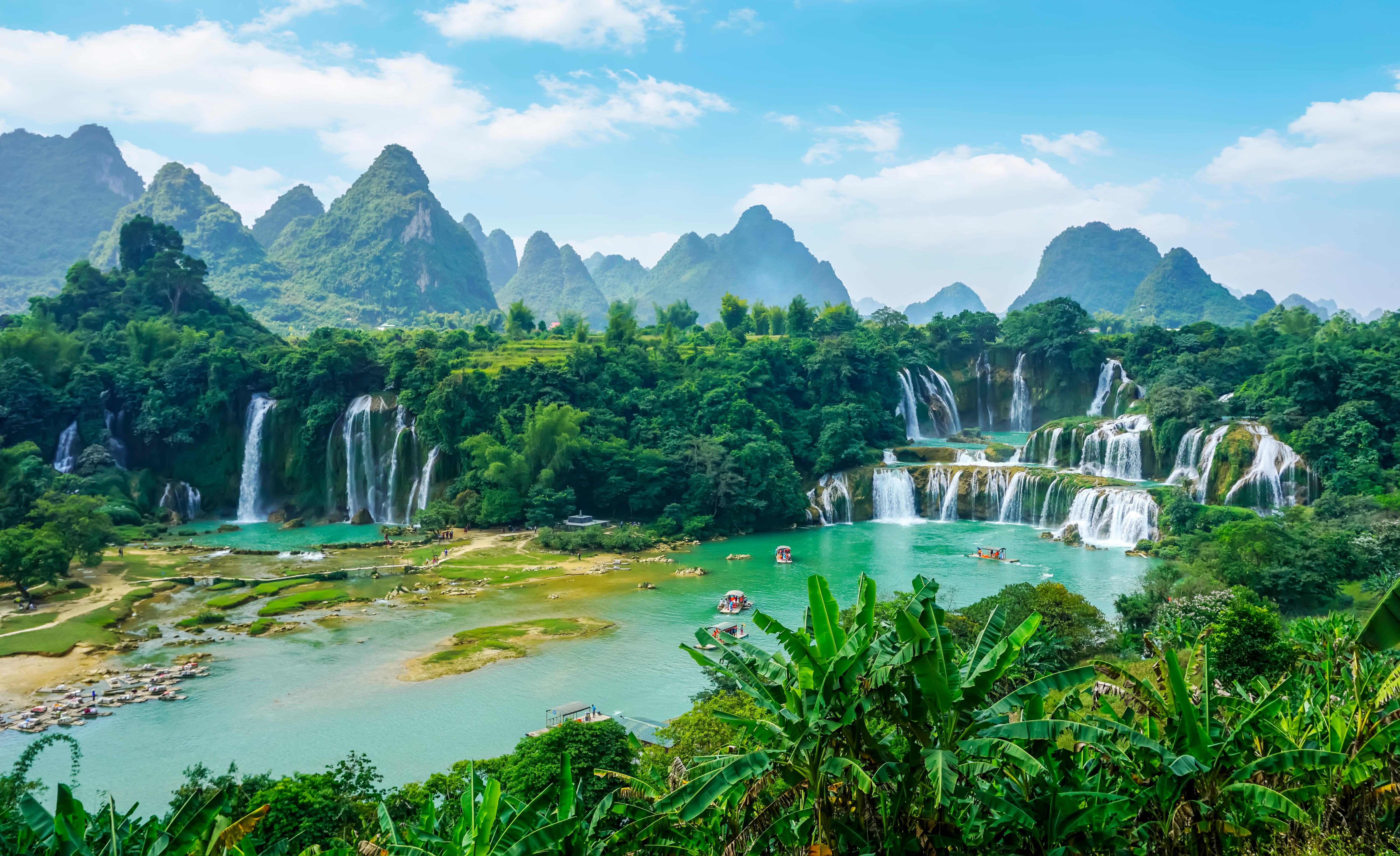 น้ำตกแห่งนี้ตั้งอยู่ในเขตรอยต่อของประเทศจีนและประเทศเวียดนาม เป็นน้ำตกขนาดใหญ่ที่กว้าง 200 เมตร สูง 70 เมตร และลึก 60 เมตร มีโปรแกรมสำหรับนั่งเรือเที่ยวชมน้ำตก ดื่มด่ำกับความสดชื่นของน้ำตกยักษ์ ที่จะทำให้คุณตกตะลึงเมื่อได้ไปยืนอยู่ตรงหน้า
