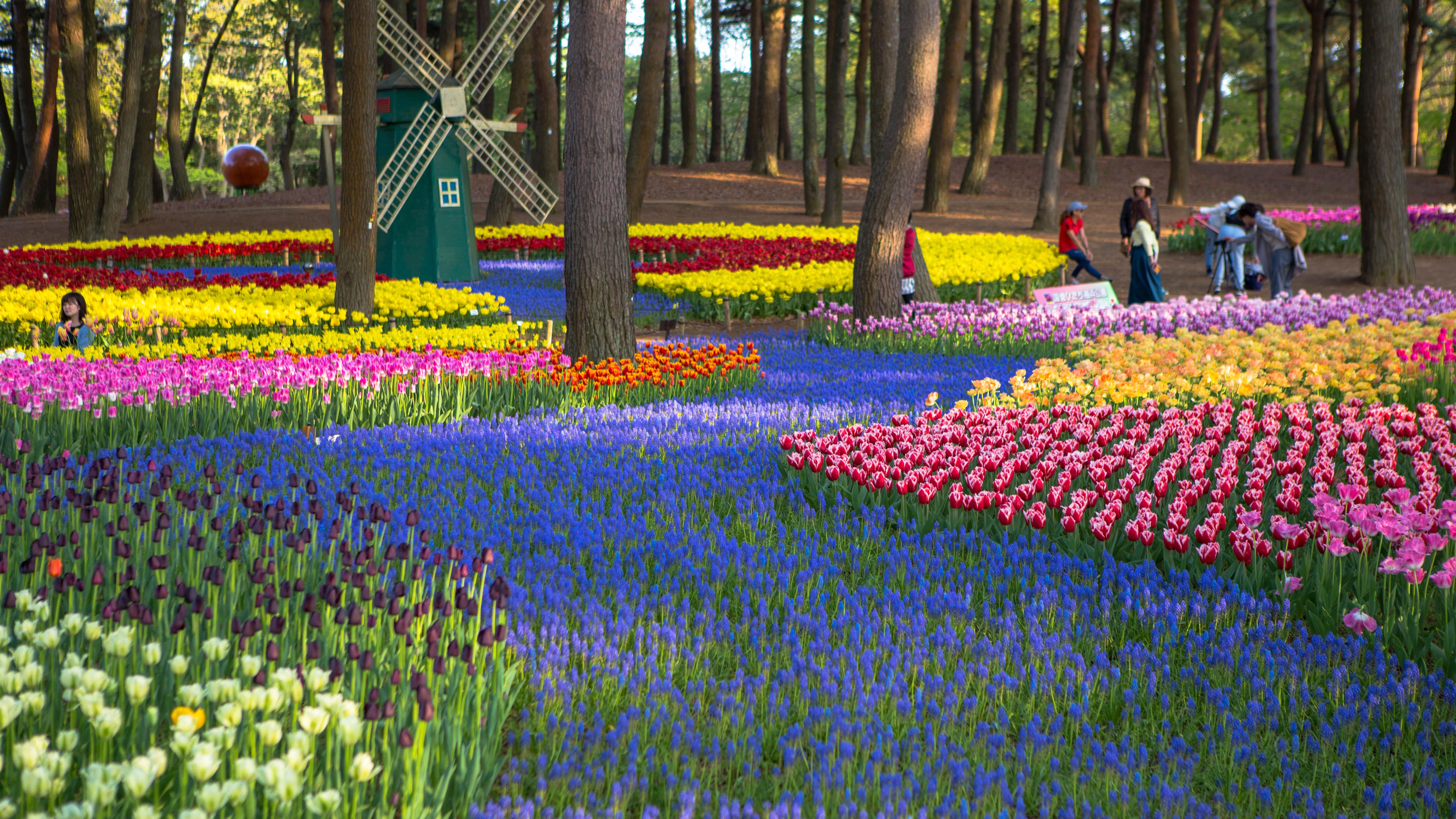 ทุ่งดอกทิวลิปสีแดง สีเหลือง สีชมพู ทอดยาวไปสุดขอบฟ้าโดยมีกังหันลมเนเธอร์แลนด์เป็นฉากหลัง แต่มันอยู่ในทวีปเอเชียอย่างประเทศญี่ปุ่นนี่เอง