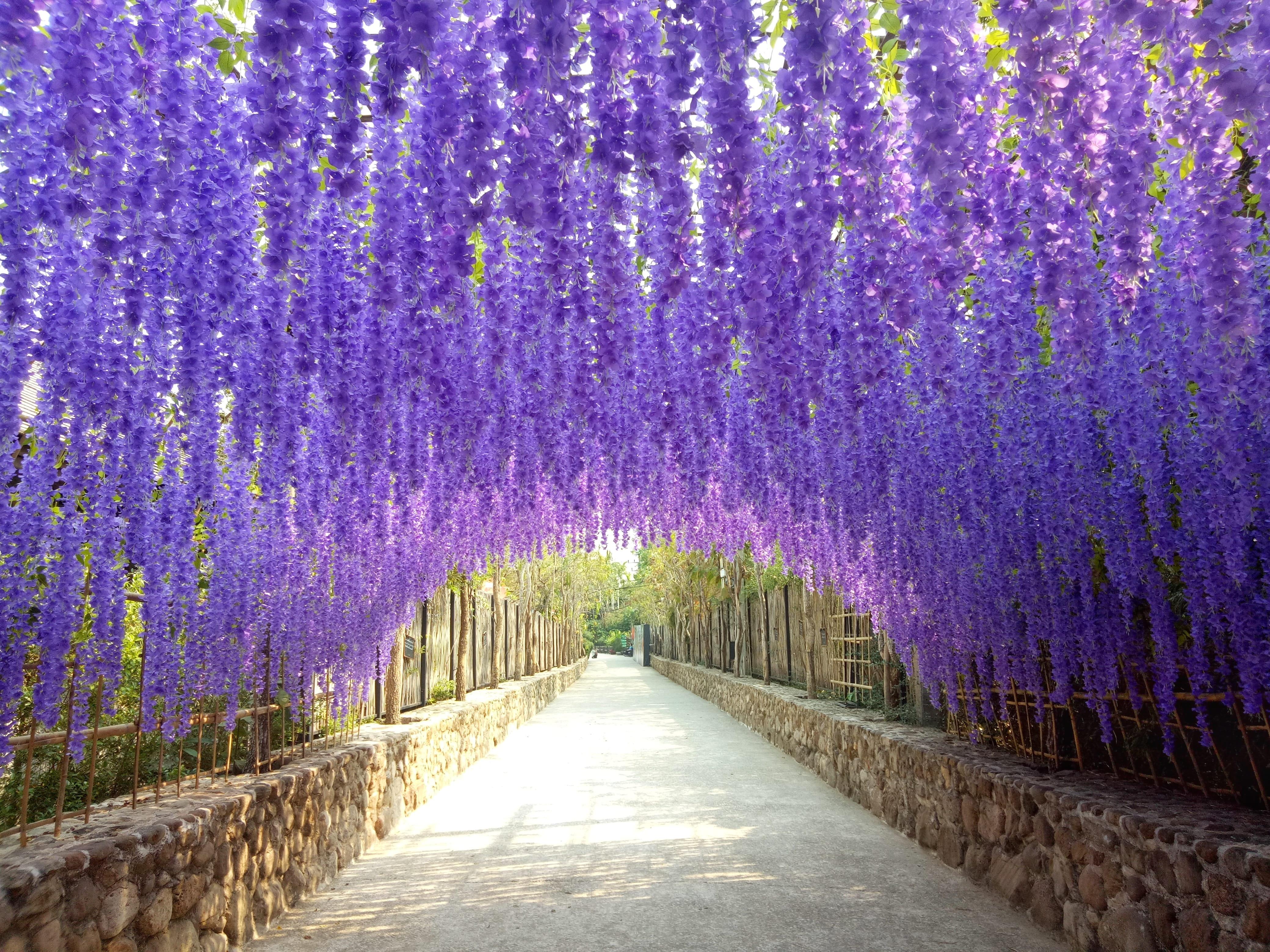 การเกาะตัวของดอกไม้ ห้อยลงมาเป็นกลุ่ม สวยงามพลิ้วไหวในสายลม Wisteria จึงมีเสน่ห์อันเย้ายวน และงดงามต่อหน้าทุกคู่สายตาที่จับจ้อง